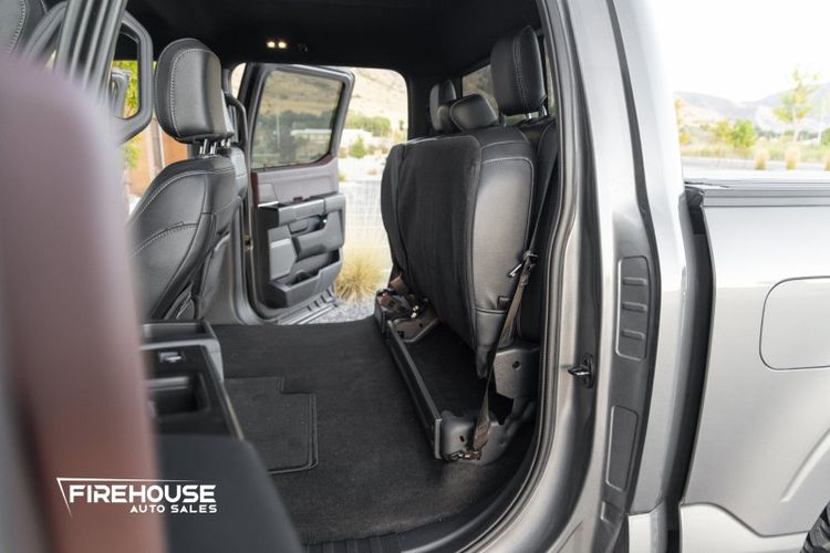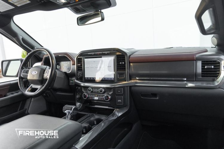 Experience the perfect blend of power and luxury with the 2022 Ford F-150 Lariat. This exceptional pickup, featuring a Crew Cab design, offers ample space for both passengers and cargo. Under the hood lies an impressive EcoBoost 2.7L Twin Turbo V6 engine delivering 325 horsepower and 400 lb-ft of torque, paired with a smooth-shifting 10-speed automatic transmission to conquer any terrain effortlessly thanks to its robust 4WD drivetrain.