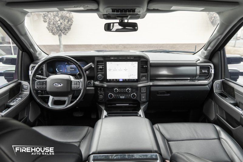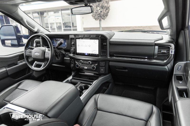 Unleash the power and sophistication of the 2023 Ford F-350 Super Duty Lariat, a truck that commands attention with its Agate Black exterior and robust Crew Cab design. This powerhouse is equipped with a formidable Power Stroke 6.7L Biodiesel Turbo V8 engine delivering an impressive 500 horsepower, paired seamlessly with a 10-speed shiftable automatic transmission for unparalleled performance on any terrain. The Tremor Off-Road Package ensures you’re ready for adventure, featuring off-road tires, unique front springs, and rock crawl mode to conquer challenging landscapes.