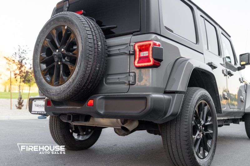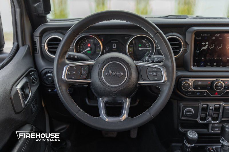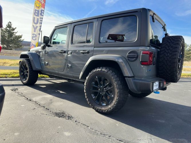 Unleash your adventurous spirit with the 2023 Jeep Wrangler Sahara 4xe, a perfect blend of rugged capability and modern innovation. With Brand New Toyo Open Country tires, dressed in an eye-catching Granite Crystal Metallic Clear Coat, this hybrid plug-in marvel combines a powerful 2.0L Turbo I4 engine with eco-friendly efficiency, delivering an impressive 375 horsepower and 470 lb-ft of torque. Whether you're navigating city streets or conquering off-road trails, its advanced 4WD system ensures unmatched performance in any terrain.