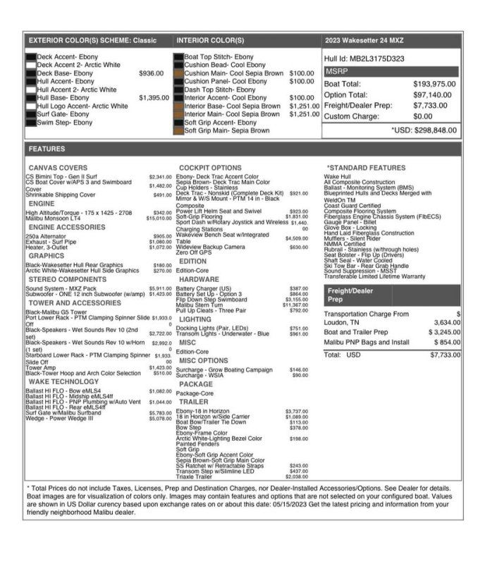 – LT4 Power. Turn heads on the water with this stunning 2023 Malibu 24 MXZ, powered by the Monsoon LT4 Supercharged engine for unmatched performance and reliability. Built for serious wakeboarding, surfing, and luxury cruising, this boat blends power, technology, and comfort into one incredible package.