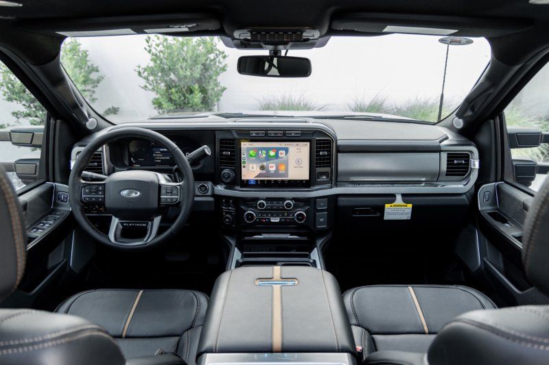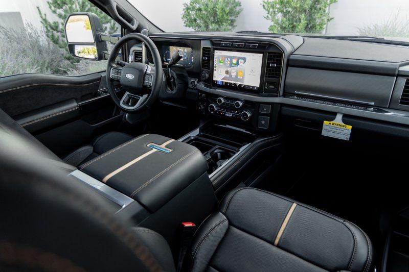 Elevate your driving experience with the 2024 Ford F-450 Super Duty Platinum, a powerhouse designed for those who demand more from their truck. Cloaked in an elegant Agate Black exterior, this Crew Cab marvel combines rugged capability with refined luxury. Its formidable Power Stroke 6.7L Biodiesel Turbo V8 engine delivers an impressive 500 horsepower, seamlessly managed by a 10-speed shiftable automatic transmission and supported by advanced 4WD capabilities. Whether conquering off-road trails or cruising city streets, the FX4 Off-Road Package ensures you're ready for any adventure.